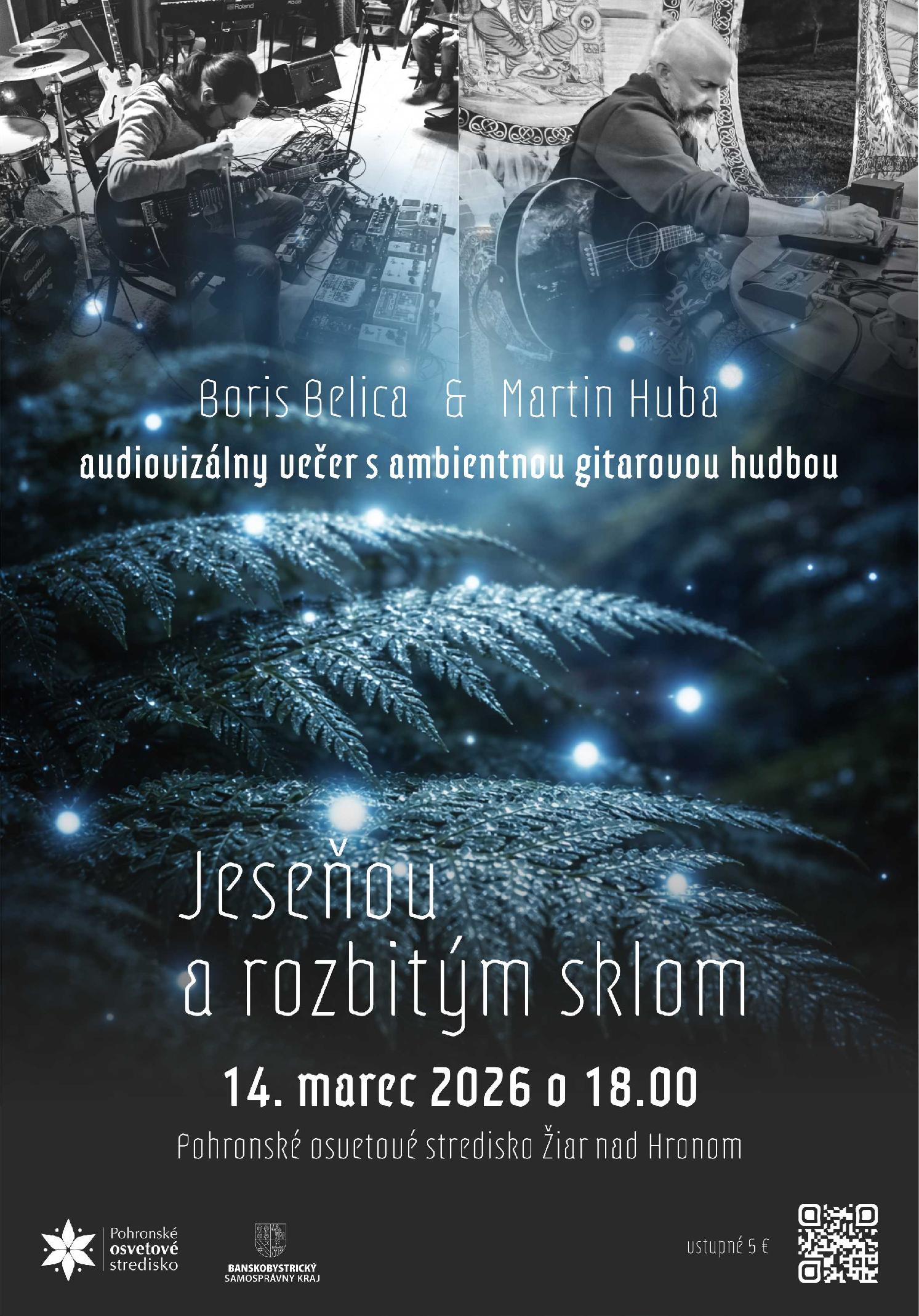 Pozývame vás na spoločný koncert dvoch "gitarových maliarov", Martina Hubu (ZH) a Borisa Belicu (NR), ktorí v improvizovaných setoch vytvoria ambientnú hudbu k záberom pestrofarebnej jesennej prírody žiarivých farieb, ale aj k temným zákutiam opustených budov na urbexových potulkách po opustených miestach.